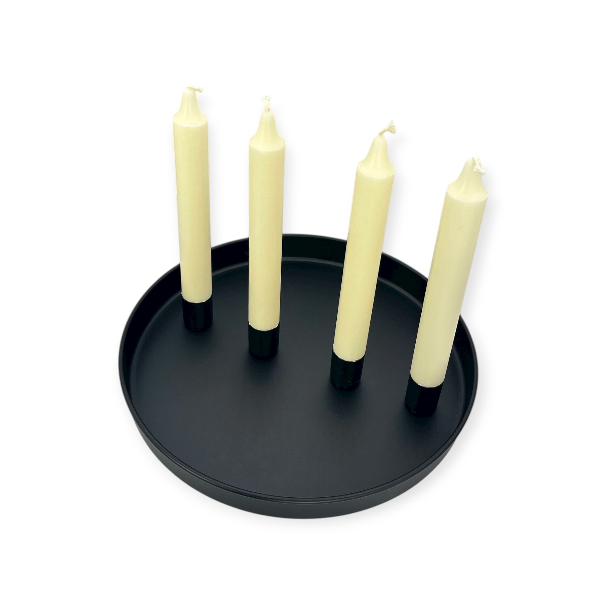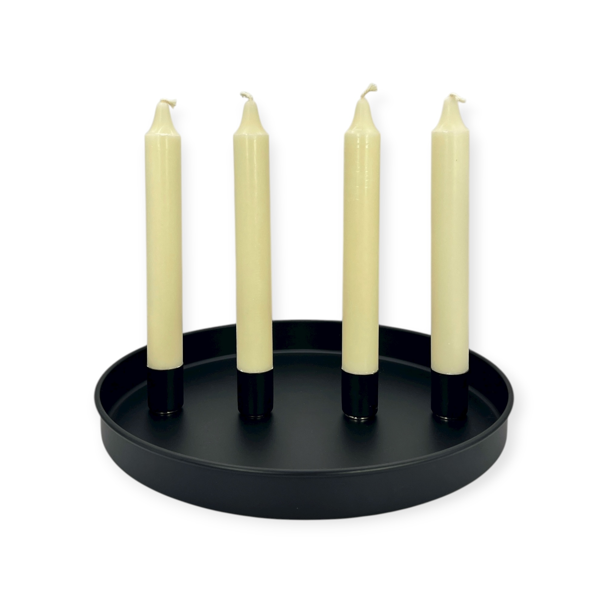 Ovaj profinjeni crni metalni adventski vijenac savršen je izbor za sve koji traže spoj modernog dizajna i praktičnosti. Izrađen od kvalitetnog, čvrstog metala, vijenac odlikuju stabilni stalci za svijeće opremljeni jakim magnetima, zahvaljujući kojima svaka svijeća ostaje potpuno uspravna i sigurno učvršćena tijekom cijelog korištenja.