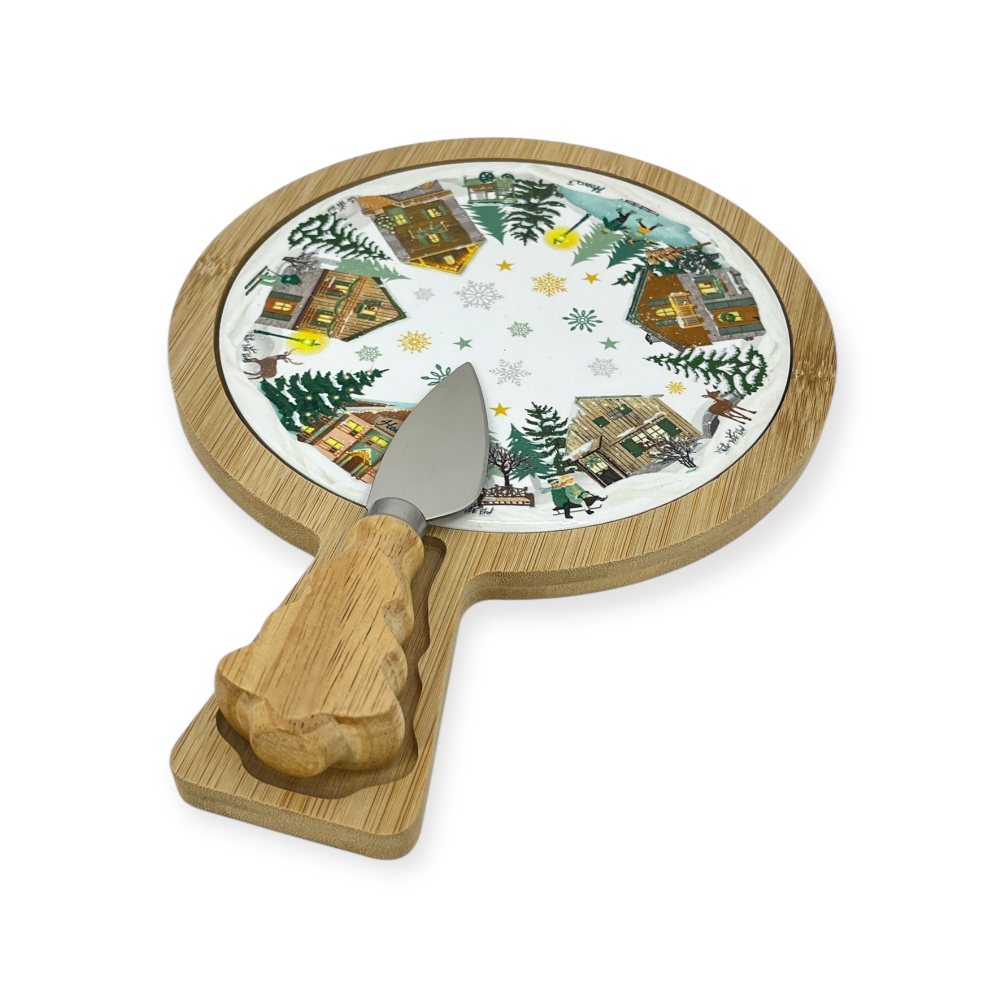 SET DASKA + NOŽ ZA REZANJE SIRA, BOŽIĆ